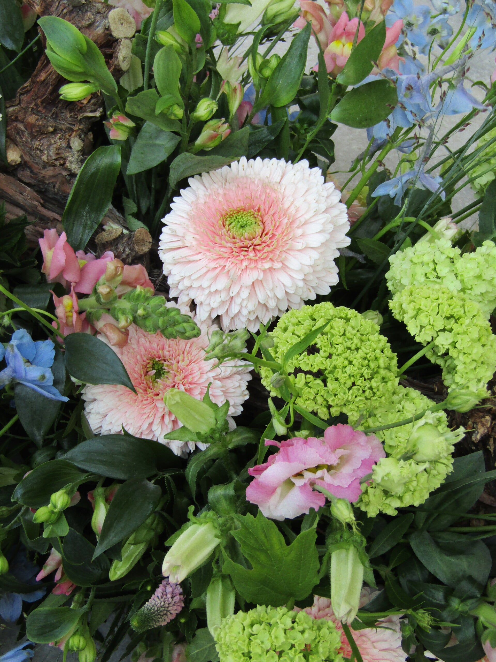Een stijlvol en uniek rbijzonder rouwstuk met een opvallend lang stuk druivenhout als basis. Het stuk is aan beide zijden gevuld met bloemen, waardoor het een mooi bloemrijk geheel word. Door de natuurlijke vorm van het hout krijgt het arrangement een natuurlijke en pure uitstraling.