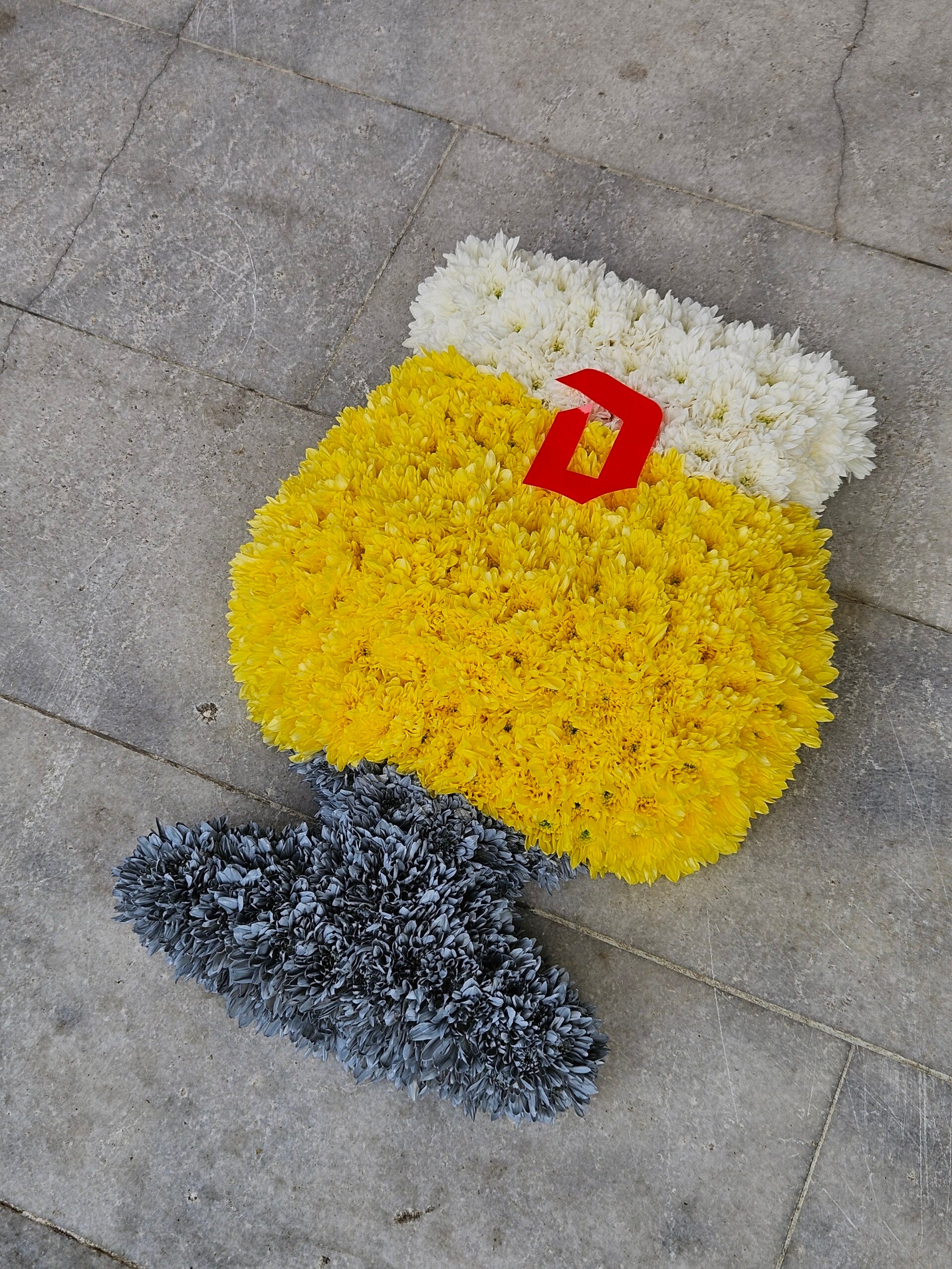 - Vorm: Elk bloemstuk wordt met zorg vervaardigd in de vorm van een bierglas, met aandacht voor detail om een realistische en eerbiedige weergave te creëren.