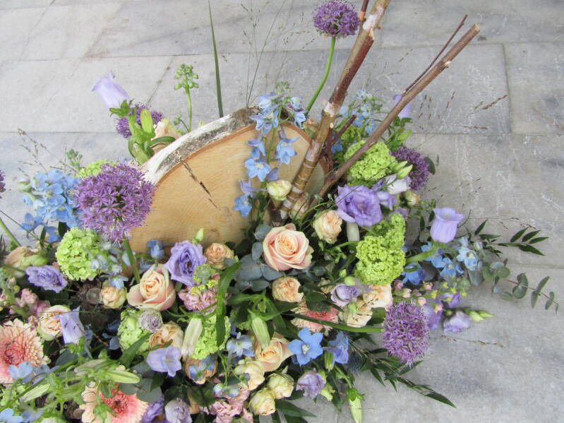 Hopelijk heb je een duidelijk beeld hoe de stukken elkaar kunnen versterken met de juiste kleur van bloemen en materialen. Het is zo mooi om het samenzijn van familie en vrienden terug te laten komen in de rouwbloemen. Aparte stukken, maar samen een troostend en kloppend geheel.