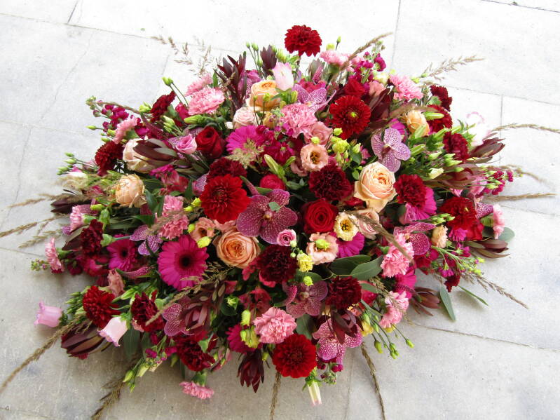 Als heel veel bloemen elkaar mogen versterken... dan heb je een Rouwsetting.