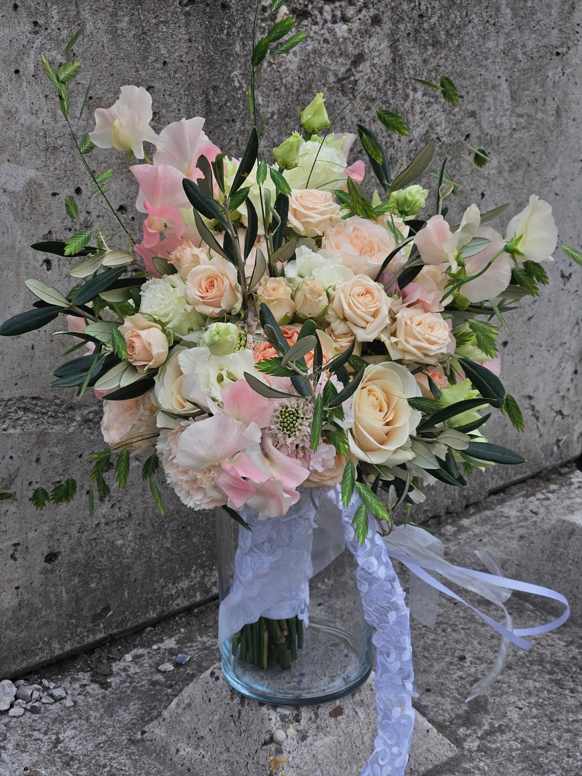 Maar er zit zo een groot verschil tussen het maken van beide. Bruidswerk is veel fijner werken, denk alleen al aan de corsages. Maar ook het tijdstip van leveren vaak vroeg op de dag. Ik zie mezelf nog staan in de winkel, voor dag en dauw, de laatste hand leggend aan de bloemen. Omdat ik zo graag wil dat alles perfect is, wil ik het liefst op het laatste moment nog afbinden. En gek genoeg krijg ik daar zó veel stress van.